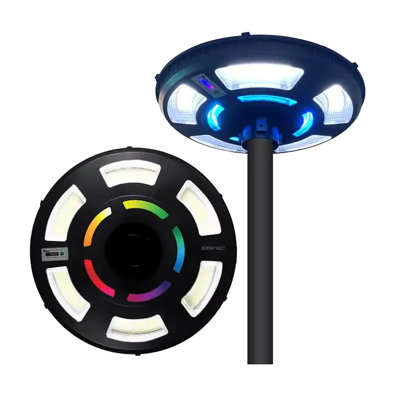 UFO tasarımı ve RGB renk seçenekleriyle dış mekanlarınıza estetik katın. 360 derece aydınlatma, güçlü batarya ve uzaktan kumanda ile kontrol tamamen sizde.
